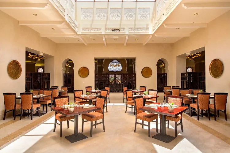This resort sits between the Hajar Mountains and the Gulf of Oman, offering a calm, beachfront atmosphere. It has the feel of a coastal Mediterranean village, built for comfort and quiet.